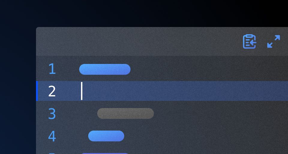 A code editor with syntax highlighting, change history, and keyboard navigation.